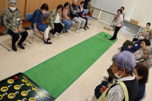 当JAのボランティアグループ「たんぽぽの会」は、管内6地区でミニデイを開催しました。今回は、毛糸やビーズでオニヤンマブローチを作った後、スカットボールや体操、脳トレを行いました。