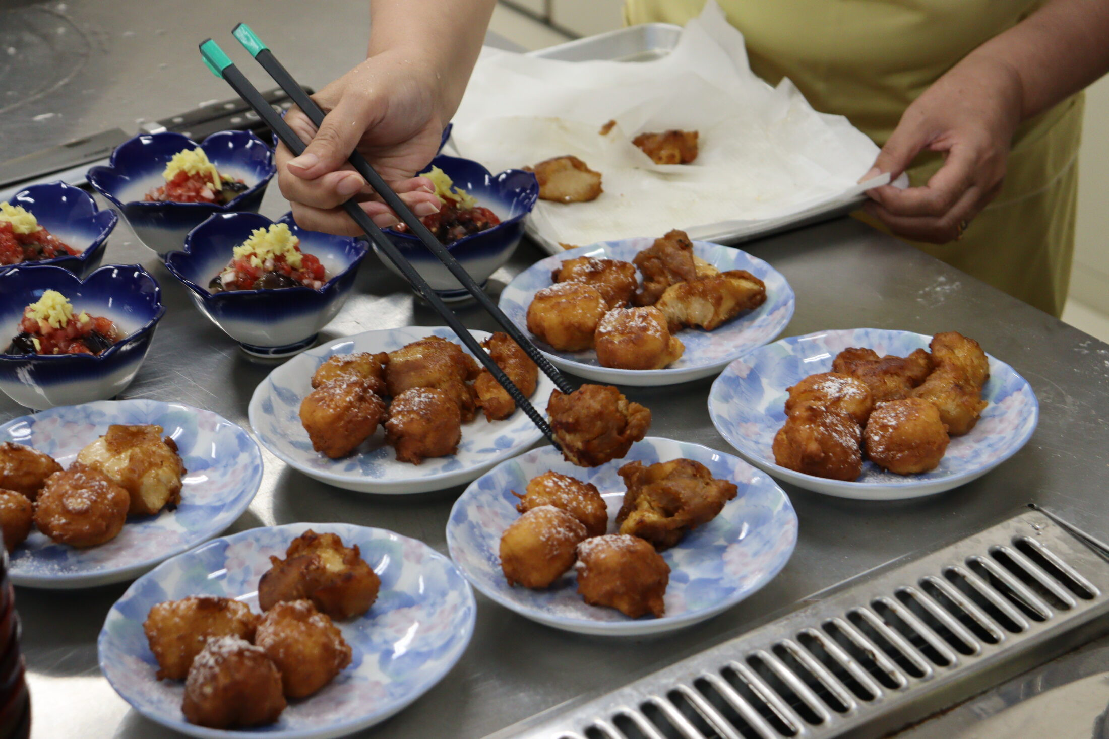管内6地区で「こめ油料理教室」を行いました。築野食品工業㈱の方を講師に迎え、Aコープのこめ油で唐揚げやドレッシングなど4品を作り試食しました。参加者は「カラッと揚がっておいしい」「ドレッシングに入れても脂っこくなくて良い」と感想を交わしながら料理を味わっていました。